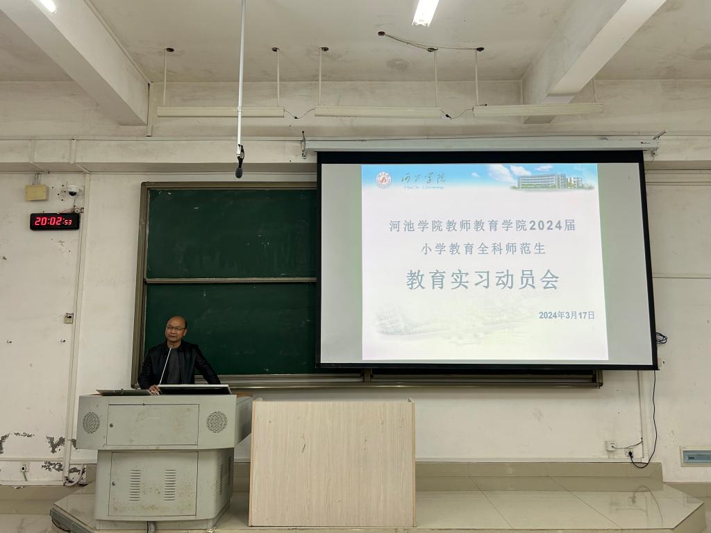 樊仲光副经理在动员会上指出,本次教育实习根据“下得去、留得住、教得好”的农村小学全科教师师范生培养目标,实施“属地实习、三位一体管理、两级指导”的教育实习管理体制,实习生要在带队指导教师的指导下完成教学工作、班主任工作和教育调查研究三个部分的实习内容。他还强调,同学们要高度重视本次教育实习工作,严格按照教育实习计划开展工作,严守纪律,艰苦朴素,虚心请教,高质量圆满完成教育实习任务。
