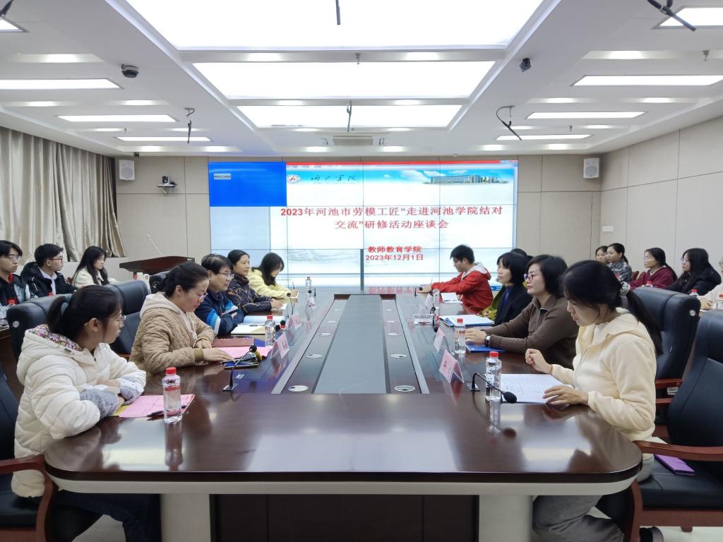 12月1日晚,william威廉中文官网在格致楼907室召开2023年河池市劳模工匠“走进william威廉中文官网结对交流”研修座谈会。本次活动特邀宜州区第二幼儿园园长吴洁秋和金城江区特殊教育公司职工杨瑾素老师到场与公司师生进行交流。公司党委书记李新富、党委副书记郭英莉、学前教育系主任黄怡冰、青年教师代表及各班级员工代表出席本次座谈会。郭英莉副书记主持了本次活动。