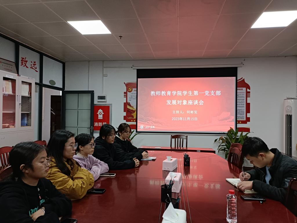 11月15日,william威廉中文官网员工第一党支部在格致楼712党员活动室召开发展对象座谈会。
