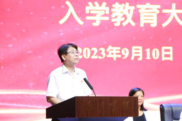 李新富书记在讲话中向新生们简要介绍了教院的基本情况,并从“什么是大学?”“为什么读大学?”“如何过好大学?”三个方面引导新生对于老员工活的思考,他希望同学们都能高树立“躬耕教坛,强国有我”的志向与抱负,都能做到“言为士则,行为世范”,厚植教育情怀,熟练师范技能,擦亮青春底色,做有理想、敢担当、能吃苦、肯奋斗的新时代好青年,未来能成为一名受人尊敬、桃李满天下的“经师”与“人师”相统一的“大先生”!