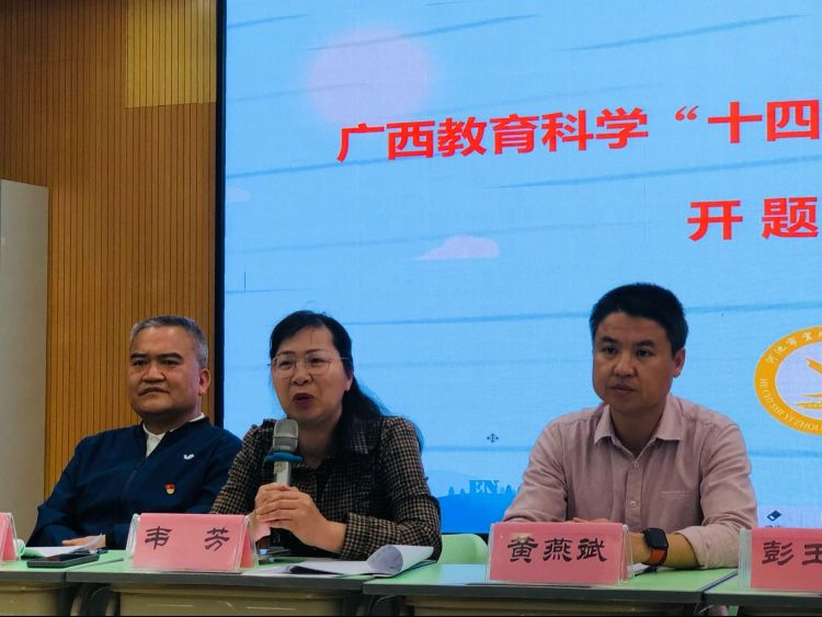 开题报告会在宜州区实验小学多媒体教室举行。宜州区教育局教研室主任滕明,副主任黄燕斌及课题组成员参加了开题报告论证会。会议由宜州区实验小学科研处莫号苗老师主持。