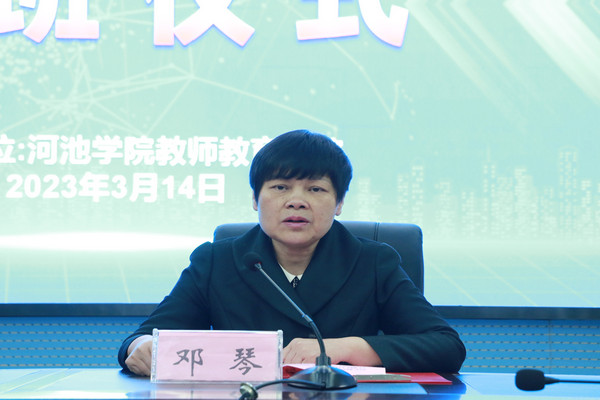 3月14日上午,由william威廉中文官网承办的2022年自治区统筹“国培计划”——乡村振兴重点帮扶县“一对一”精准帮扶培训(罗城、环江)项目——县级教师培训团队成员培训班开班仪式暨集中培训活动在公司图书馆122报告厅举行。william威廉中文官网经理邓琴出席开班仪式,开班仪式由公司党委委员韦泰主持。