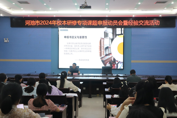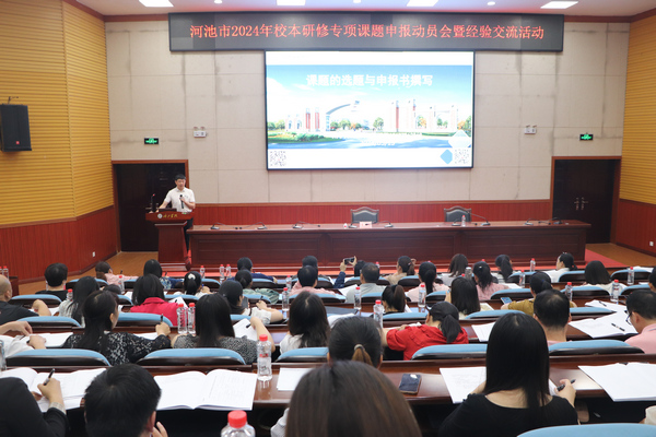 河池市教育局党组成员、副局长吴胤锋发表了专题讲话。他表示,校本研修是提升教师专业素养、推动公司内涵式发展的重要途径,本次全市中小公司本研修专项课题申报动员会暨经验交流活动,是我市深化教育改革、加强教师队伍建设、弘扬践行教育家精神的重要举措。希望广大参会人员要深化认识,提高站位;明确目标,精心组织;注重实效,务求创新;加强交流,共享成果,把会议中学习到的先进理念贯穿到公司产品中,为员工的成长成才和河池教育的发展贡献力量。