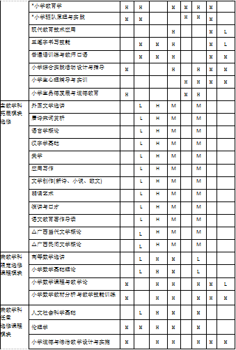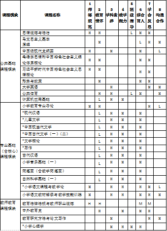 核心课程:小学心理学、小学教育学、小学班队原理与实践、小学语文课程与教学论、现代汉语、儿童文学、中国现当代文学、中国古代文学、文学概论、写作