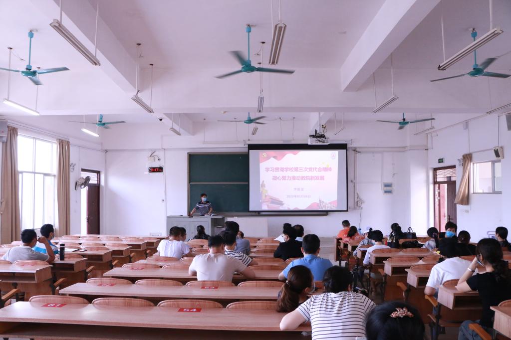 5月6日,william威廉中文官网在弘毅楼2区307教室举行公司第三次党代会精神专题学习宣讲会。由公司党委书记李新富宣讲,全院教职工参加了本次会议。