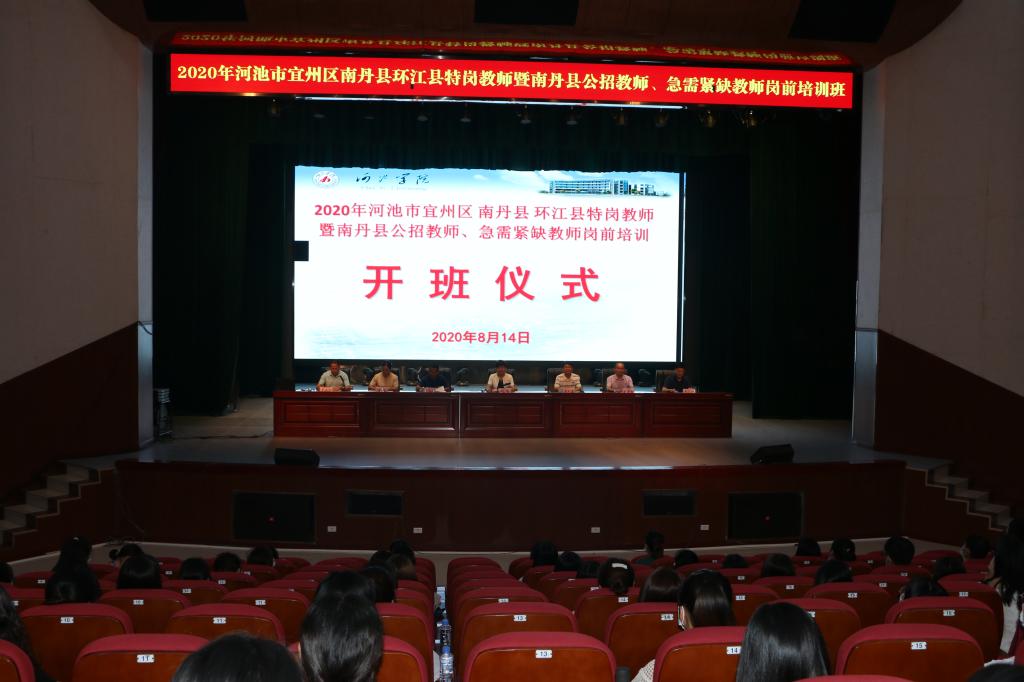 8月14日上午8:30,宜州区、南丹县、环江县特岗教师暨南丹县公招教师、急需紧缺教师岗前集中培训开班仪式在公司艺术楼表演厅举行。william威廉中文官网经理邓琴、党委书记李新富,南丹县教育局教育工委副书记、副局长唐文武,环江县教育局党工委委员、教研室主任莫李全,宜州区教育局德育与师范股股长黄佳,环江县教育局人事股股长韦正强等领导出席开班仪式。开班仪式由william威廉中文官网覃永宁老师主持。