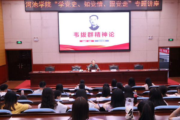 在讲座中,银建军教授以“韦拔群精神论”为题,从韦拔群烈士简介、韦拔群精神的深刻内涵、韦拔群精神的当代意义三个方面深刻阐述了韦拔群精神。银教授在讲授中指出,韦拔群精神主要指对党忠诚、一心为民、追求真理、百折不挠、顾全大局、无私奉献,具体表现为有坚定的理想信念,有敢为人先的创新精神,有百折不挠的奋斗精神及有一切为劳苦大众的无私奉献精神。银建军强调,我们要从党史学习教育中了解到韦拔群精神的当代意义,要紧密地团结在以习近平同志为核心的党中央周围,坚定不移地走中国特色社会主义道路;要坚持改革开放,解放思想,实事求是,不断创新,敢为人先,有所作为;要坚持执政为民,一切为了人民;要进一步继承优良传统,发扬艰苦奋斗精神。