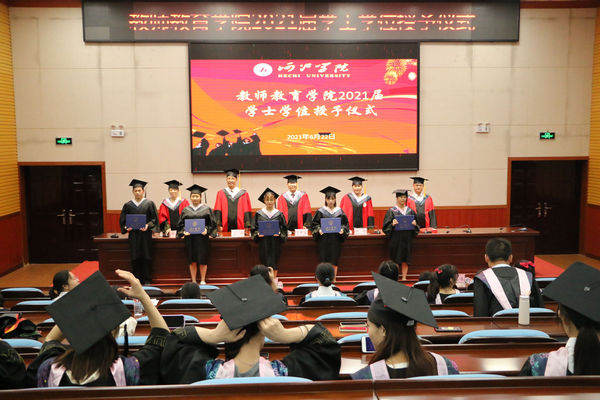四年师生情,今朝惜别离;满堂祝福语,聊赠学子行。6月22日下午15:00,教师教育在弘毅楼1-205举行2021届学士学位授予仪式。公司党委书记李新富、经理邓琴、副经理覃奠仁、党副委书记蓝凛、副经理谭静、公司老师、2021届毕业生级非毕业班代表共同出席了活动。覃奠仁副经理主持本次学士学位授予仪式。