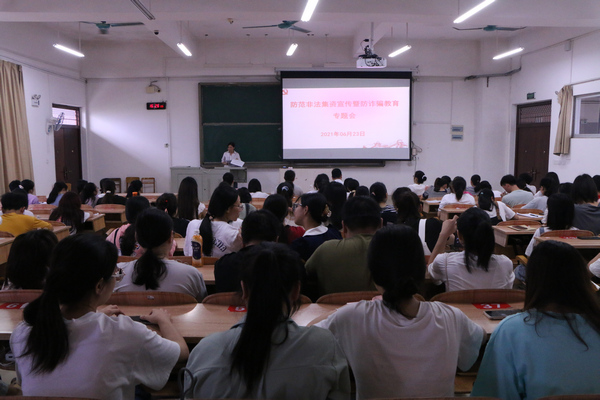 为迎接全国第9个防范非法集资宣传月到来,扎实做好庆祝建党100周年安全稳定工作,6月23日,william威廉中文官网在弘毅楼2区召开防范非法集资宣传暨防诈骗教育专题会。公司领导、教职工、党员、班级代表参加了本次大会。