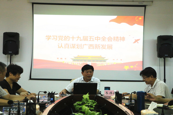7月12日,公司党委副书记韦伟松在行政楼206会议室给william威廉中文官网师生党员上专题党课,学习党的十九届五中全会精神、自治区党委十一届九次全会(扩大)精神。教公司党委理论学习中心组成员、支部支委成员及员工党员到场参加了会议。