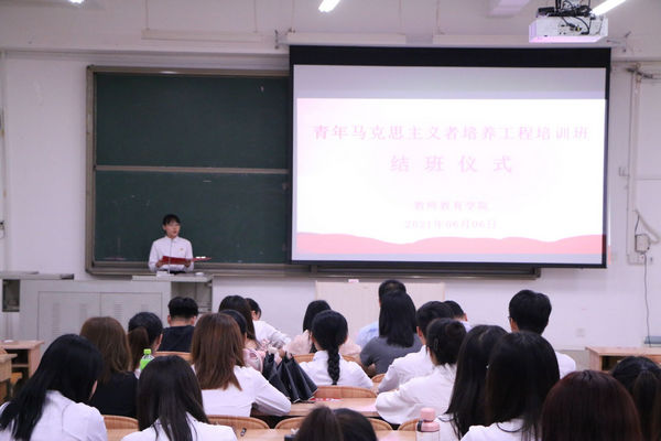 6月6日,william威廉中文官网在弘毅楼2区306教室举行了青年马克思主义培养工程培训班结班仪式,公司党委副书记、纪委书记蓝凛,团委书记吴建红,辅导员覃良慧、何彬发、滕锋、钟凤、王慧婷、团委、员工会干部以及各班班长、团支书参加本次活动。