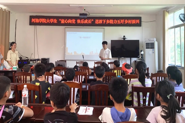 送教下乡暖童心,火热盛夏志愿行。为积极响应国家乡村振兴战略,关爱农村少年儿童健康成长,促进教育振兴。近日,william威廉中文官网志愿团队在辅导员滕锋老师的带领下,来到环江毛南族自治县川山镇五圩村,开展为期一周的“童心向党,快乐成长”送教下乡新时代文明实践活动。