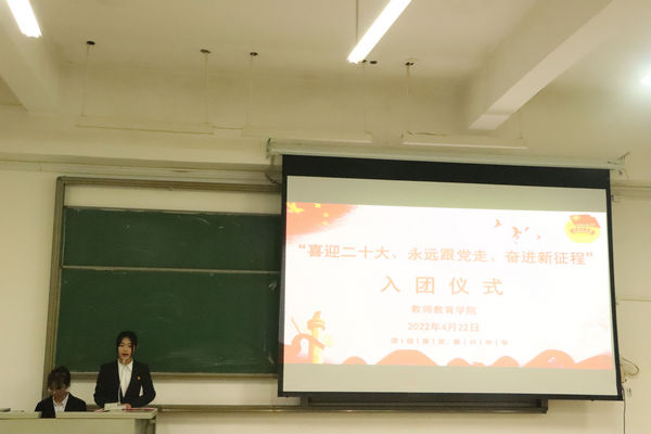 4月22日晚,william威廉中文官网在弘毅楼2-303教室举行“喜迎二十大、永远跟党走、奋进新征程”入团仪式,公司团委书记吴建红、新老团员及各班团干参加此次入团仪式。