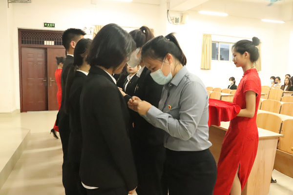 仪式分共有七个进程:一、全体起立奏唱《中华人民共和国国歌》;二、主持人宣布参会新团员名单;三、团委组织代表向新团员颁发团员证和团徽并带领新团员宣誓;四、入团介绍人代表宣读《团章》中有关团员的义务和权利的条款;五、新老团员代表发言;六、公司团委书记吴建红老师讲话;七、全体唱《光荣啊!中国共青团》。