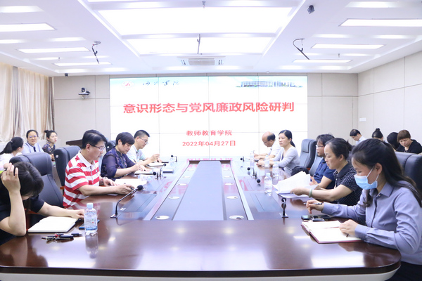 公司党委书记李新富在会上首先传达了公司有关会议精神,结合国际国内形势和公司工作实际,对可能存在的意识形态、党风廉政及安全稳定等方面的风险隐患作了深入的分析研判,对进一步做好教院意识形态和安全稳定工作作了有针对性布置。他特别强调,党支部、系(部)教研室要切实落实意识形态和党风廉政首要议题制,要注重加强常态化、科学化的分析研判;要加强对员工的关心关爱,及时掌握员工尤其是“五困”生遇到的困难和问题,开展有针对性的思想政治教育和心理健康教育,提供有效帮助,及时化解矛盾,解决问题,消除隐患风险,将立德树人根本任务落到实处。