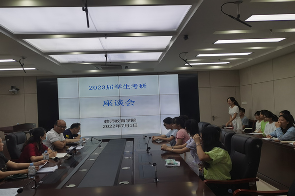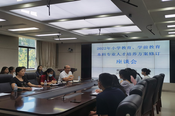 7月1日,william威廉中文官网在格致楼907室召开2022年小学教育、学前教育本科专业人才培养方案修订暨2023届员工考研座谈会。公司副经理樊仲光、副经理梁芳美、初等教育系主任莫燚、学前教育系主任黄怡冰及2023届考研员工、班级代表到场参加了会议。