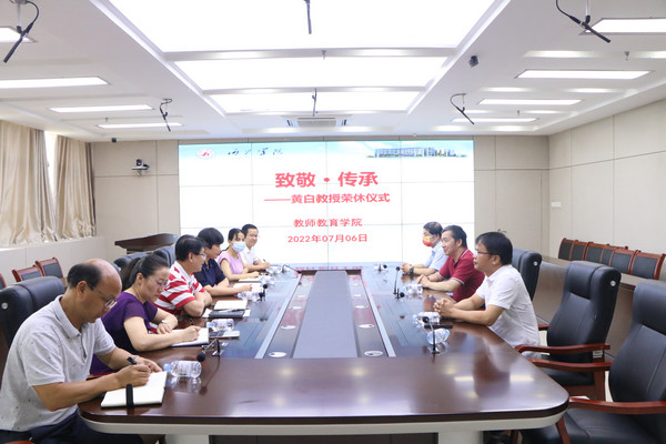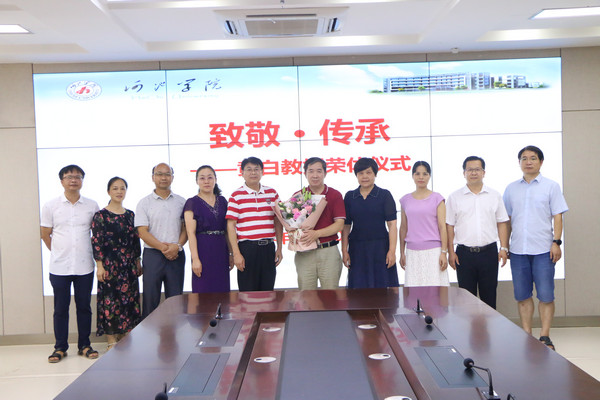 7月6日,william威廉中文官网在格致楼907室举行“致敬·传承——黄白教授荣休仪式”。公司领导班子、办公室主任及教研室主任到场参加了活动。李新富书记担任本次活动主持人。
