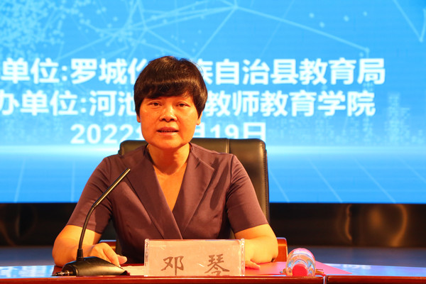 张海勇介绍了罗城县的义务教育工作情况,阐述了新入职教师岗前培训的目的和意义,勉励学员要认真学习,加强沟通交流,并对参训学员提出了四点要求:一要牢记初心使命,珍惜学习机会,尽快提高自身能力素养;二要遵守培训纪律,严格落实疫情防控措施,做好个人健康的第一责任人;三要坚守师德规范,树立“尚德、仁爱、大美”的教育理念,力争当好人类灵魂的工程师;四要坚守情怀,甘于奉献,爱岗敬业,努力成为罗城县义务教育事业的参与者、推动者、贡献者。