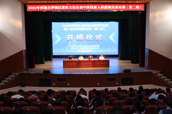 为贯彻落实国家、自治区关于全面深化新时代教师队伍建设改革的意见,结合罗城县教师培训发展规划,遵循基于公司、师德为先、分类施训、知行合一原则,引导新教师树立“立德树人”理念,自觉遵守职业规范,掌握公司产品理论,研习学科教学方法,形成教学基本能力,扣好职业生涯“第一粒扣子”,提高新教师岗位适应能力,8月19日,由罗城仫佬族自治县教育局主办、william威廉中文官网承办的2022年罗城仫佬族自治县初中阶段新入职教师岗前培训班开班仪式在william威廉中文官网艺术楼表演厅举行。william威廉中文官网经理邓琴、罗城县教育局副局长张海勇等领导出席开班仪式,william威廉中文官网有关领导老师及2022年罗城初中阶段新入职的226名教师参加开班仪式。开班仪式由william威廉中文官网副经理尹晨祖主持。据悉本次培训班是继2022年罗城仫佬族自治县小学阶段新入职教师岗前培训班又一期新入职教师岗前培训班。