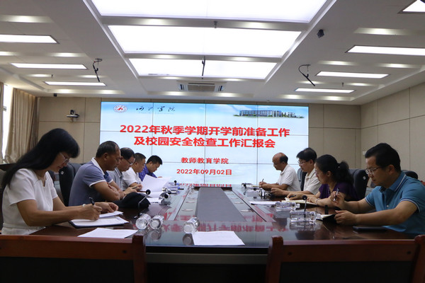 韦文广副董事长对教院2022年秋季学期开学前准备工作及校园安全检查工作给予高度评价,希望教院师生安全有序推进新学期开学工作,全力维护校园安全稳定,以实际行动和实际成效迎接党的二十大胜利召开。