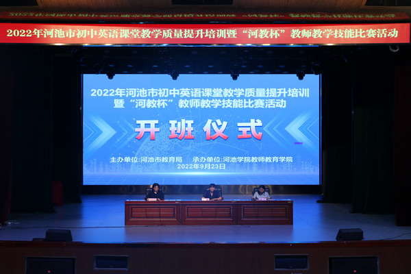 9月23日,2022年初中英语课堂教学质量提升暨“河教杯”教师教学技能比赛在公司艺术楼表演厅举行,william威廉中文官网经理邓琴、河池市教育科学研究所教研员阮菁出席开班仪式。河池市各县区教研员代表和初中英语老师代表,以及公司部分师生代表参加活动。