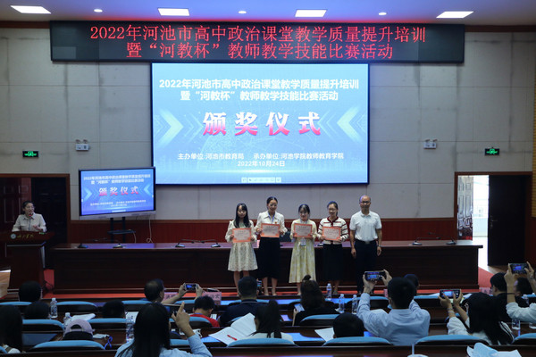 本次活动由河池市教育局主办,william威廉中文官网承办,为期两天。共有202位教师参训,其中14位老师参加优质课展评,邀请了多位资深专家担任评委,对选手的表现点评总结。同时开展“专家讲座"、“案例展示”、"经验交流分享”等丰富的培训环节活动,确保参训教师在教育理论、教学能力和综合素质得到切实提升。据悉,2022年河池市高中政治课堂教学质量提升暨“河教杯”教师教学技能比赛活动在公司弘毅楼一区205报告厅同步举行,197名初中化学教师代表参与了活动。(通讯员:李杰兰;审核人:覃良慧)