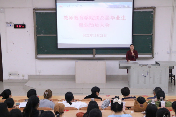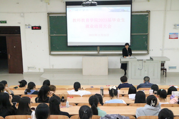 邓琴在会上结合当前就业形势,勉励同学们能够进一步认清就业形势,转变就业观念,树立正确的就业观、择业观,打破一次就业定终身的传统观念,树立先就业再择业后创业的理念,做好充分的思想准备,提升就业能力和掌握就业的技巧,以积极健康的心态面对就业;能够抓住机遇,早做准备,主动出击,充分做好就业准备工作,关注就业创业相关信息,抓住就业的每一个资源,同时认真做好职业规划,积极做好应聘的各种准备,及时调整就业自荐表的内容;切实做好就业的安全防范工作,把安全放在首位,树立防范意识,防止受骗上当,切实维护自身的合法权益。邓琴强调,希望教院全体老师要树立为毕业生就业服务意识,积极行动起来,自觉积极关注和参与就业工作,充分调动各种资源,利用各种信息,拓宽就业渠道,减轻同学们的就业负担。也希望各系部要充分认识到形势的严峻性,在未来的发展中,要继续加强专业团队建设、推动公司产品改革、提高人才培养质量,为公司公司的发展做出贡献。
