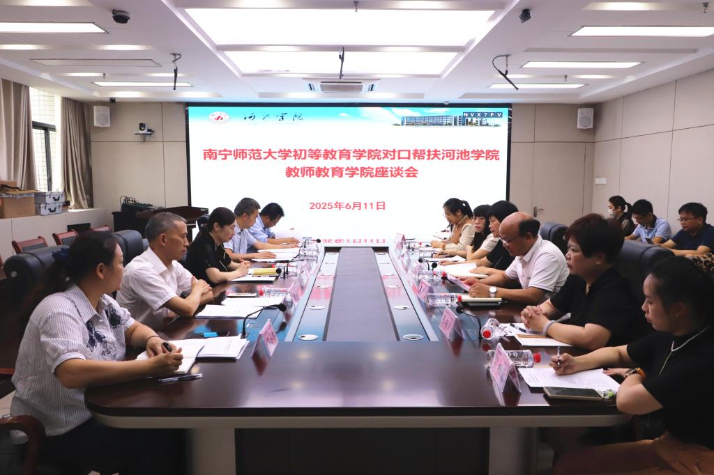 为贯彻落实《关于开展2023—2025年广西普通本科高校对口支援工作的通知》(桂教高教〔2022〕61号)的精神及相关要求,做好师范专业认证整改及本科公司产品审核评估工作,在南宁师范大学的大力支持下,经双方充分磋商和全力筹备,南宁师范大学初等教育公司与公司搭建了对口帮扶关系。6月11日,南宁师范大学初等教育公司经理梁宇、副经理梁秀清一行5人到公司开展对口帮扶活动,邓琴经理、樊仲光副经理、小学教育专业负责人、各系各教研室主任、副主任及相关教职工参加了座谈会和帮扶业务活动。