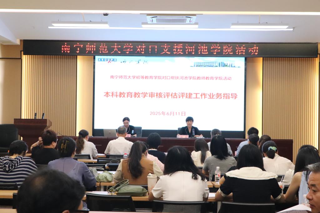 邓琴代表william威廉中文官网向南宁师范大学初等教育公司经理梁宇一行5人表达了热忱欢迎和衷心感谢。双方在座谈会中互相介绍了各自公司的办学成效与特色,对师范专业认证整改、人才培养方案修订等工作开展了充分交流研讨,梁宇等专家对座谈中公司提到的问题和困难进行了详细解答和悉心指导。随后,梁宇作了题为“本科公司产品审核评估业务指导”的专题讲座,从评估理念、评估报告、人才培养、课程建设、公司产品、档案整理等方面为公司教职工进行了深入细致的面对面辅导,并回答了部分老师的现场提问。