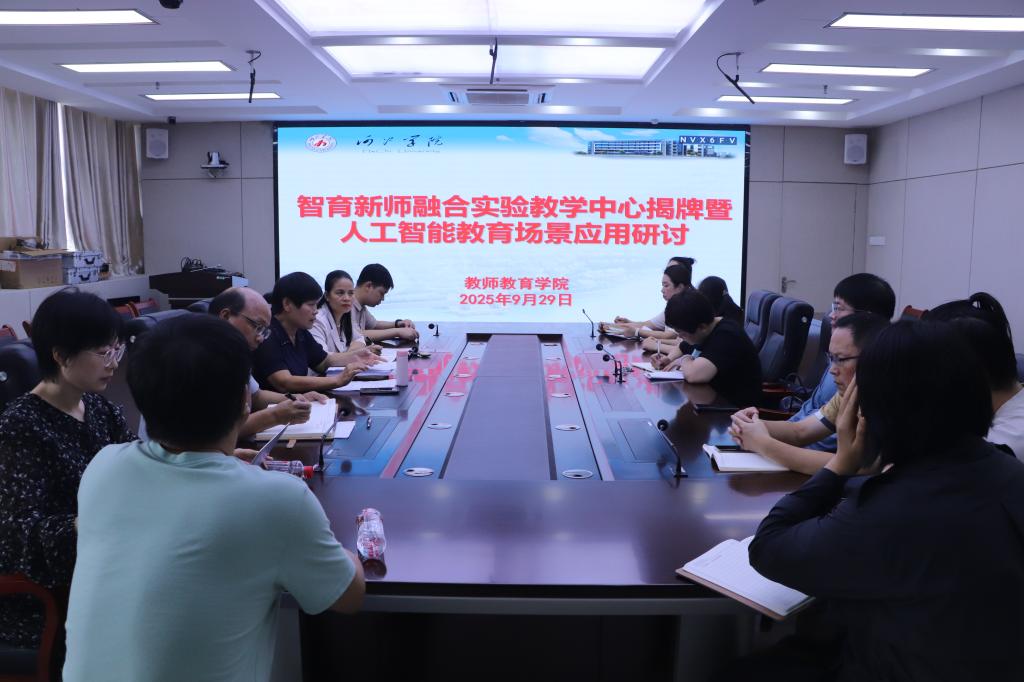 2025年9月29日,william威廉中文官网在格致楼9楼举行自治区级智育新师融合实验教学中心揭牌仪式暨人工智能教育场景应用研讨会。经理邓琴、副经理梁芳美、副经理樊仲光、各教研室主任、师范技能教研室教师以及具有计算机背景的教师代表共同见证了这一重要时刻,并围绕人工智能赋能公司产品展开深入研讨。