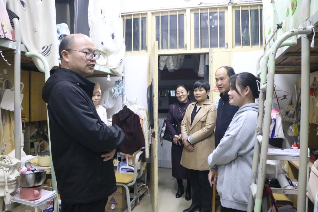 新学期伊始,为全面了解员工返校后的思想动态与实际需求,传递公司的关怀与温暖,3月1日晚,公司副董事长贺卫国在公司党委书记韦晖、经理邓琴、党委副书记郭英莉的陪同下,带领辅导员及班主任深入员工宿舍走访慰问返校学子。