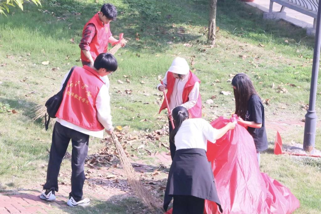 当日下午15时,参与活动的员工志愿者准时集合。在明确任务分工、领取清洁工具后,大家迅速投入到紧张有序的劳动中。本次大扫除重点对金盆捞月周边道路及部分绿化带进行了全面清理,确保卫生死角得到有效整治,校园面貌焕然一新。