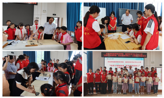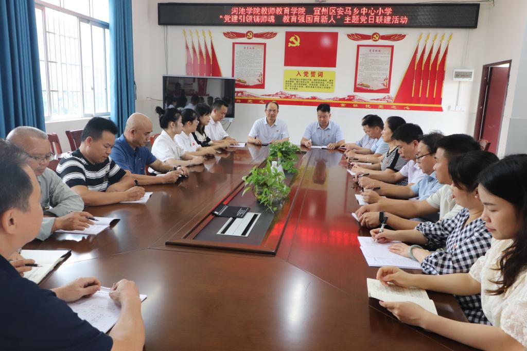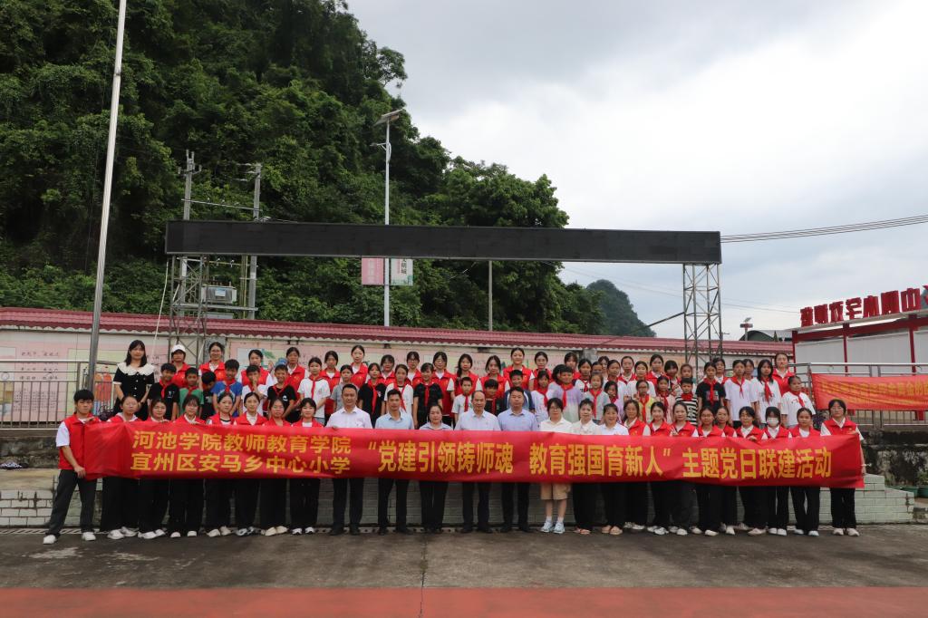 6月11日下午,william威廉中文官网三个员工党支部近50名师生党员赴宜州区安马乡中心小学党支部联合开展“党建引领铸师魂 教育强国育新人”主题党日活动。公司党委书记韦晖、公司党委专职组织员吴佳明,员工党支部书记钟凤、韦雅文、吴燕与教师党员书法专业教师王慧婷到场参加活动。