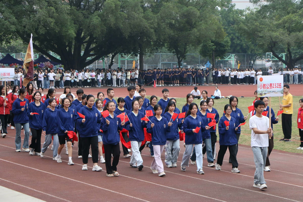 开幕式上,各方阵依次入场,同学们迈着整齐有力的步伐、喊着铿锵有力的口号、跳着快乐动感的舞蹈,在主席台前展示团结、奋进、创新、和谐的班级风采。邓琴经理在致辞中为全体运动员们加油鼓劲,她希望动员们以精神饱满、斗志昂扬的状态赛出水平,赛出风格,赛出成绩;全体裁判员、工作人员忠于职守,树立安全第一意识、热情服务意识、严守规则意识;没有比赛项目的同学,要服从运动会相关管理规定,文明观赛、主动服务,为运动员摇旗呐喊,加油助威,为争创优秀文明班级、精神文明代表队作出应有的贡献。