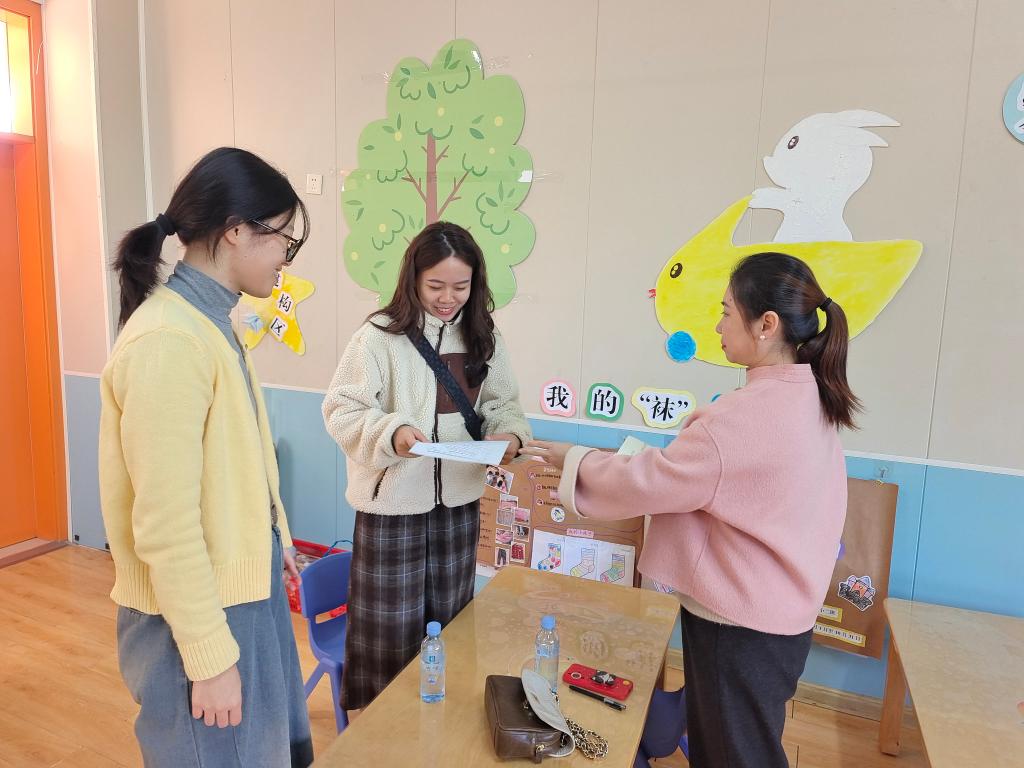 教师队伍深入课堂,观摩实习生带班情况。其中,在小二班实习的寇敏同学以音乐游戏活动《袜子舞》为主题,结合幼儿年龄特点,借助趣味互动形式开展教学,积极调动幼儿参与热情,展现出一定的专业素养与教学实践能力。