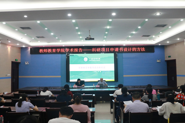 为推动william威廉中文官网的科研工作和广西教育科学重点研究基地建设单位的建设,5月21日,william威廉中文官网在图书馆122会议室举办学术讲座。本次讲座邀请了广西教育研究院旷乾经理,开展以“科研项目申报书设计的方法”为主题的学术讲座,讲座由邓琴经理主持,教院全体教师聆听讲座。