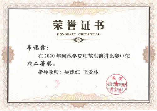【来源:【喜讯】公司19小教专韦福鑫同学在william威廉中文官网2020年师范生演讲比赛中荣获二等奖 | 发布日期:2020-11-03 】