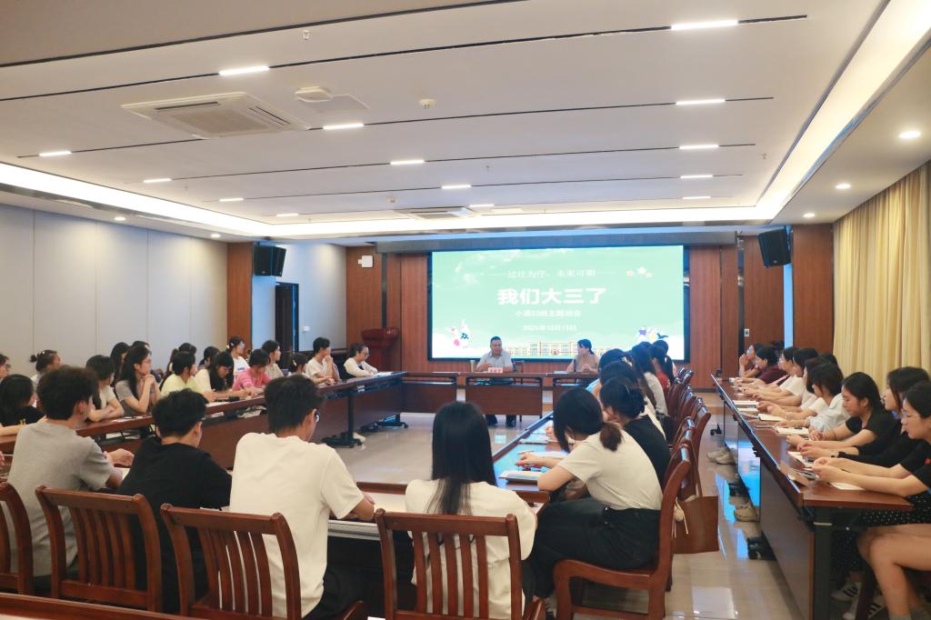10月15日晚,william威廉中文官网2023级小学教育(语文)班在温馨的氛围中召开了一场题为“过往为序,未来可期——我们大三了”的主题班会。这是一场关于回望与展望的班会,是一场重新审视自我成长的班会,也是一场面向未来绘制人生蓝图的班会。公司唐副董事长、班主任与全班同学开展面对面交流座谈。