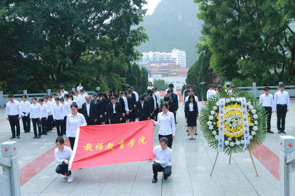 为缅怀革命先烈,继承革命先烈的光荣传统,弘扬民族精神,4月12日下午,william威廉中文官网全体教职工、各支部员工党员代表、团委员工会全体成员前往宜州市烈士陵园开展清明祭扫烈士陵园暨“缅怀革命先烈,弘扬民族精神”主题教育活动。
