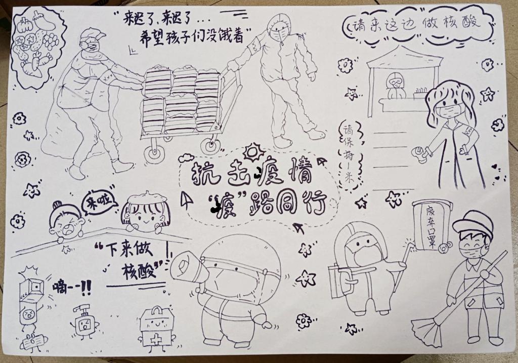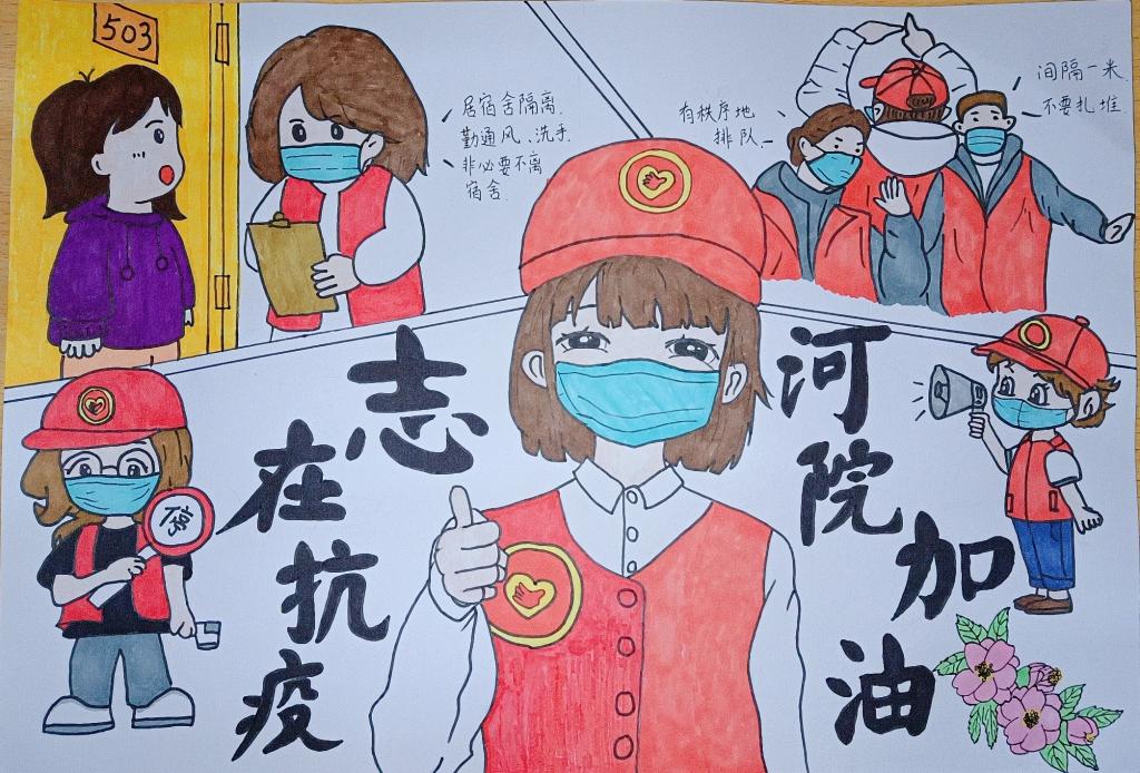 同学们用健康积极向上的视觉语言,记录疫情中的感人故事,以艺战疫,汇聚正能量,致敬防疫一线的抗疫英雄。同时也展现了广大志愿者勇于担当、不怕困难、迎险而上、无私奉献的精神品质。(通讯员:覃良慧;审核人:郭英莉)