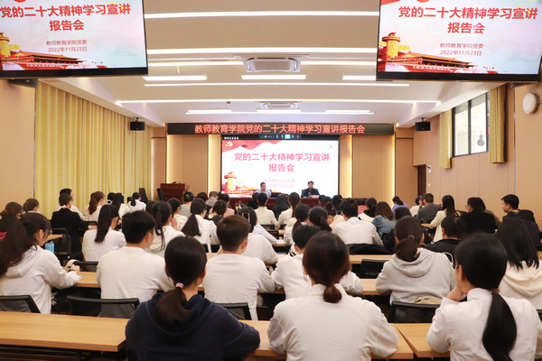 11月23日,公司党委在格致楼102报告厅组织召开学习贯彻党的二十大精神宣讲报告会,公司党委常委、宣传部部长唐毓首作宣讲报告。公司教职工、在校员工党员聆听报告。报告会由公司党委书记李新富主持。