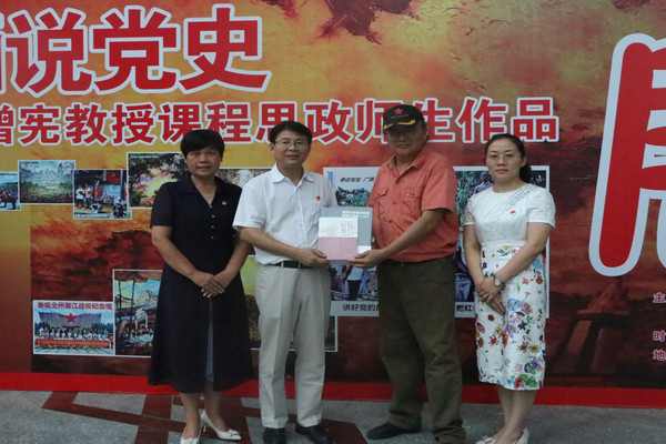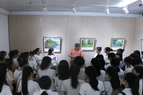 此次“画说党史”主题党日活动共展出作品六十余件,均为刘增宪教授多年寻访长征路写生作品和课堂教学指导员工创作的油画作品,是课程思政教学实践成果系列展览中主题鲜明的重要展览之一。刘增宪教授以一画一评的形式,从历史背景、表现方法、艺术价值等方面进行阐释和解读,带领同学们在画展中寻觅党史记忆,并期望同学们铭记历史,牢记使命,争做有志的新时代中国青年。活动现场,刘增宪教授向公司赠送自己精美的书画作品。