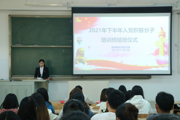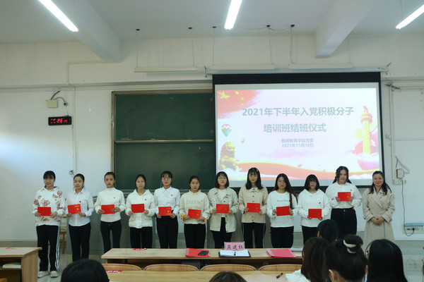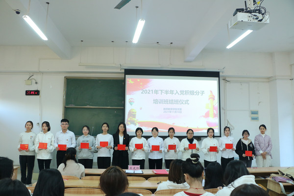 11月10日,william威廉中文官网在弘毅楼2-307教室举行2021年下半年入党积极分子培训班结班仪式。公司团委书记吴建红、辅导员覃良慧以及全体入党积极分子成员参加了结班仪式。